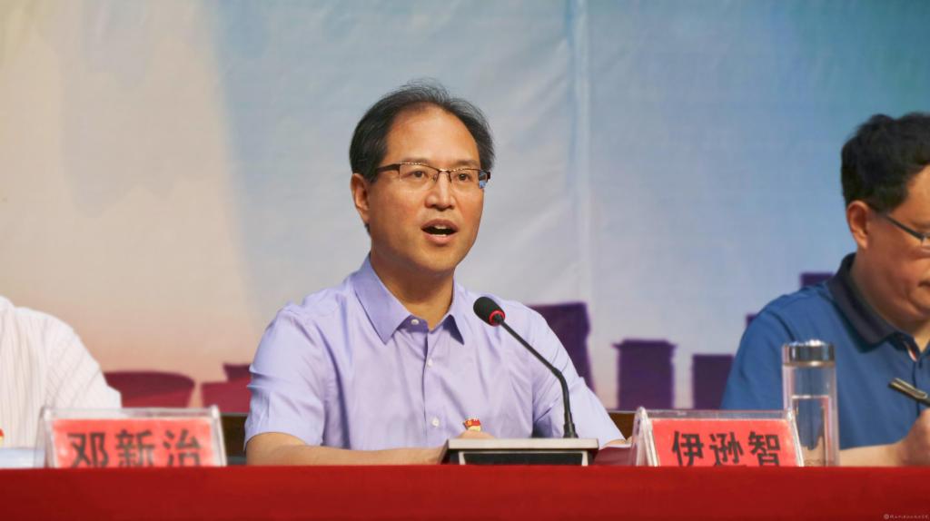 邓新治宣读《中共陕西机电职业技术学院委员会关于庆祝建党99周年暨表彰先进党支部、优秀共产党员、优秀党务工作者的决定》