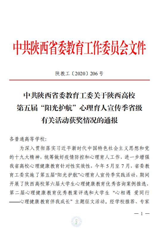 此次实践活动为陕西省各普通高校深入贯彻落实习近平新时代中国特色社会主义思想和党的十九大精神,统筹做好疫情防控和心理育人工作,进一步增强高校心理健康教育针对性和实效性的一次系列活动,经学校推荐、专家评审、委厅研究、结果公示等程序,现予以通报表彰。