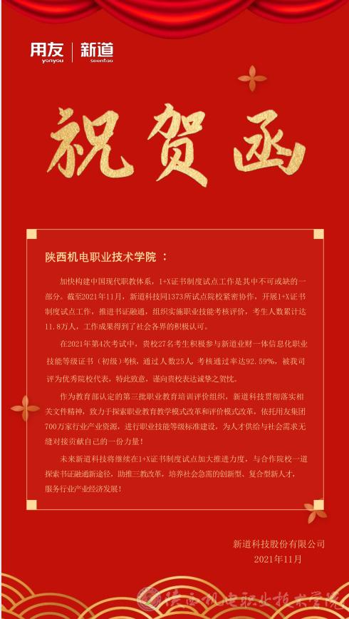 11月20日,我校经管与艺术学院承办的首期全国1+X证书《业财一体信息化应用职业技能等级证书》考试落下帷幕。该院大数据与会计专业27名考生积极参与,通过人数25人,考核通过率达92.59%,仅次于陕西工业职业技术学院,位列全省第二。