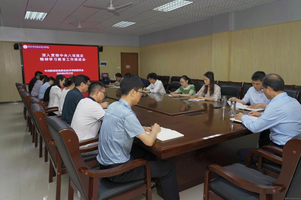 最后,赵争东对本次会议进行总结,要求各支部主动扛起主体责任,支部书记落实第一责任人职责,用高度的政治责任感和使命感精心组织实施,对标《中共陕西机电职业技术学院委员会深入贯彻中央八项规定精神学习教育实施方案》,扎实落实好学习教育各项工作。做到学习研讨再深化、查改问题再深入、集中整治再用力、开门教育再拓展,实现学习教育不留死角、不漏一员,确保学习教育取得切实成效。